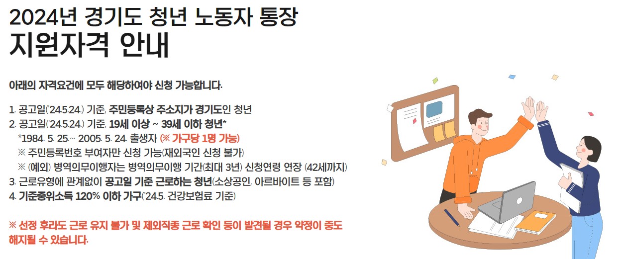 2024년 경기도 청년 노동자 통장 지원 자격