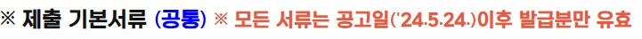 - 건강보험료 납부확인서 ('24.5월 / 1개월분) : 건강보험료를 납부하는 가구원 전원 각 1부 제출 ※ 5월 건보료 과다(과소) 고지된 경우 증빙을 위해 건강보험료 산출내역서 또는 부과내역서 제출 (발급기관 직인 필수)